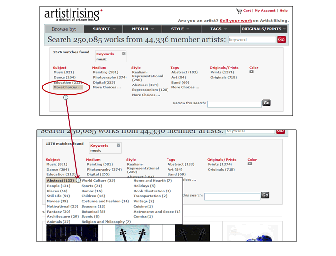 Figure 4: Example of a Dynamic Menu to show more values on Artist Rising (click to enlarge)