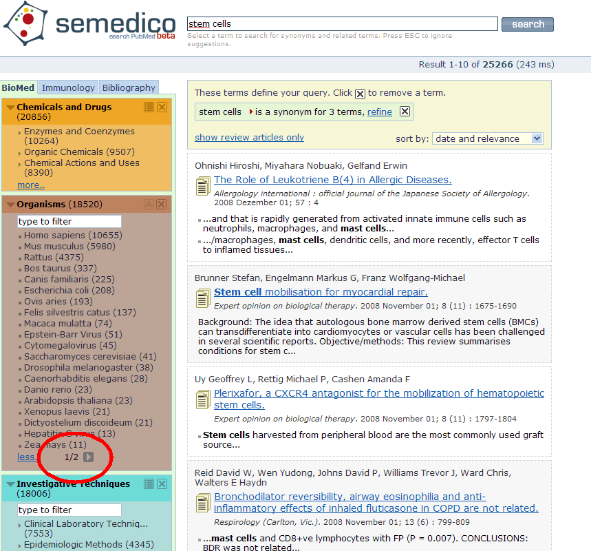 Figure 5: Example of paging on Semedico (click to enlarge)