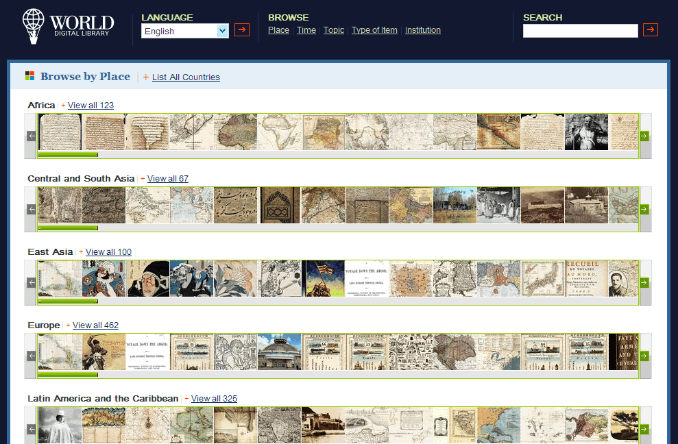The problem is, I know of only a few good examples of grouping out “in the wild” on the web. The World Digital Library is one of them. See the image below (Figure 2):