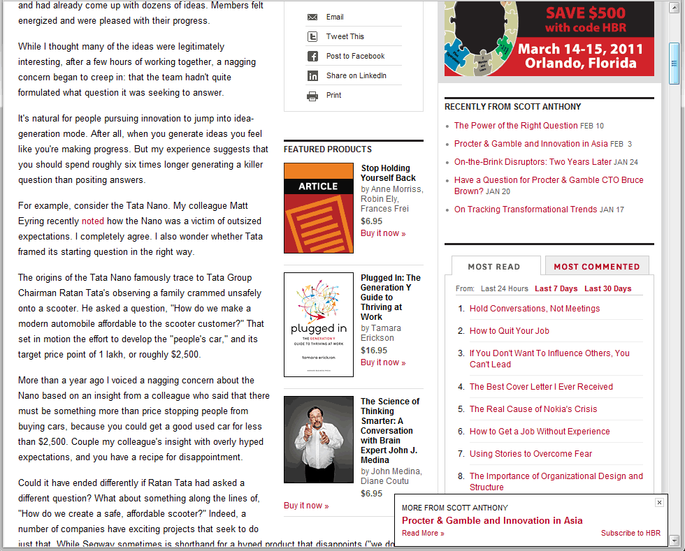 Below is an example from Harvard Business Review Blogs (Figure 1). See the small box in the lower right corner with the header “More from Scott Anthony.” The menu is animated and slides in from the right side gently.