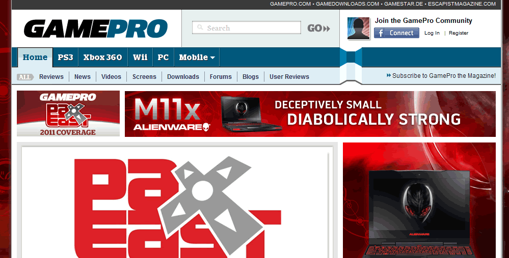 Figure 1: GamePro.com homepage, at the very top of page.
